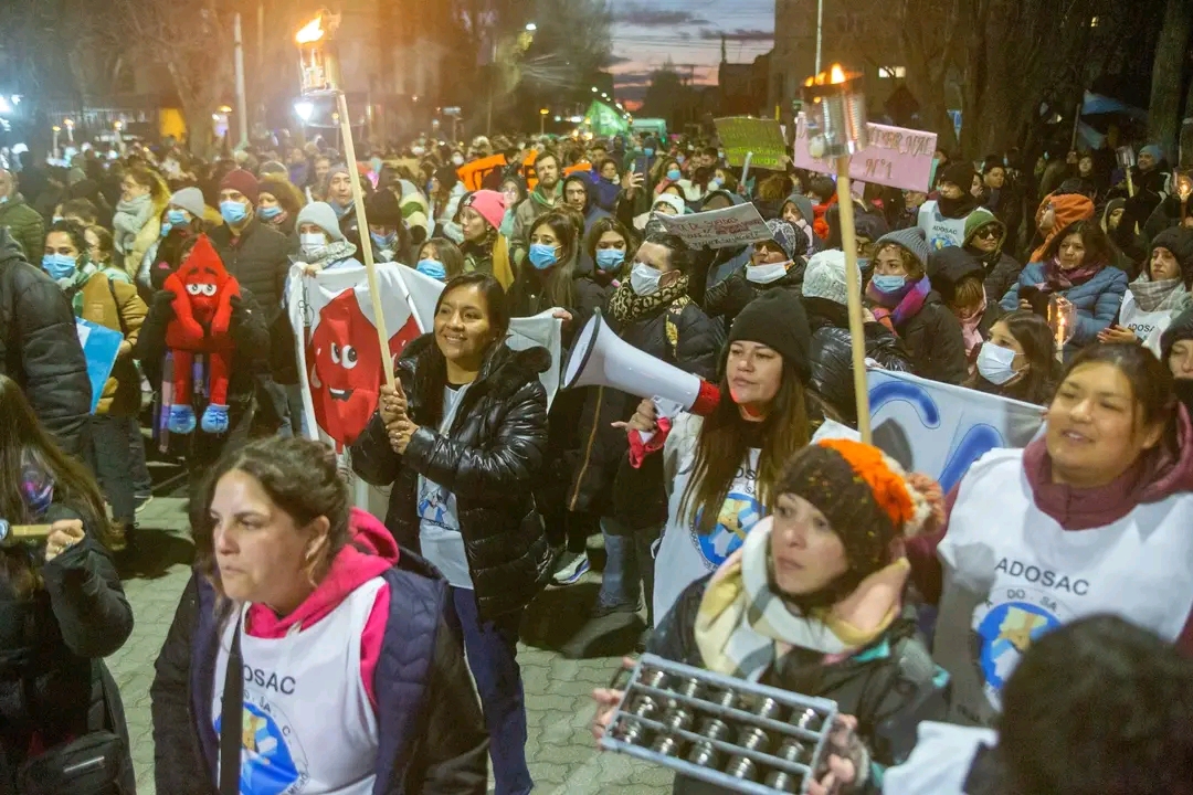 Con antorchas encendidas que iluminaron la fría noche, los manifestantes exigieron que el Gobierno provincial retome el diálogo y dé señales de voluntad política. “Es urgente y necesario que el Poder Ejecutivo asuma su responsabilidad, porque en sus manos está la solución”, señalaron.