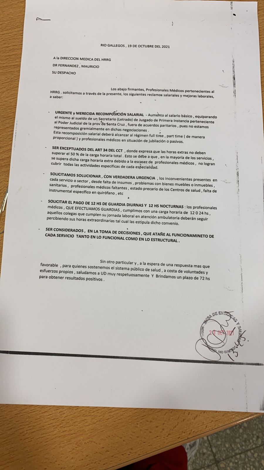 Constantini confirmó que en el día de ayer debían tener alguna respuesta a los puntos solicitados a través de la nota elevada a los directivos del HRRG, sin embargo, no se ha avanzado, solamente hubo una reunión con Verbes y la subsecretaria de Acceso y Equidad en Salud, Laura Beveraggi, también por el HRRG acompañó el Dr. Fernández: “allí nos explicaron que ellos no tienen la posibilidad de tomar una postura respecto a lo salarial, se llevaron un esquema de cómo podría ser ese aumento y que lo iban a elevar al Poder Ejecutivo, pero nuestro pedido ya viene desde hace unos días”.