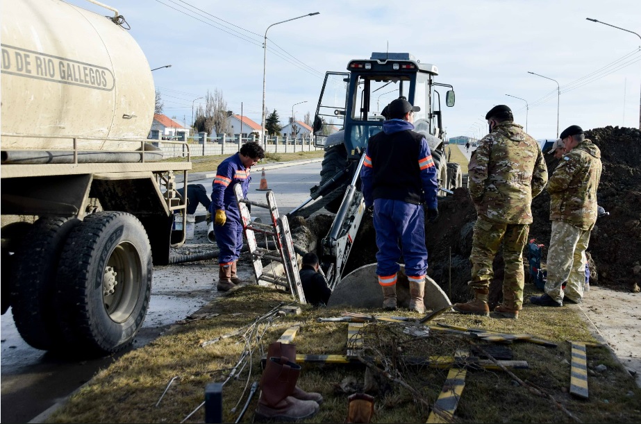 Ayer, personal de la municipalidad de Río Gallegos, dependiente de la dirección Mantenimiento de Redes Pluviocloacales se dirigió a la Avenida Emilio Riquez para llevar adelante una obra de gran envergadura con el fin de reparar la red central de desagotes cloacales del sector que comprende Barrio Malvinas Argentinas, y alrededor de 140 viviendas. En el lugar, una decena de operarios constato la avería, asearon toda la instalación con agua y controlaron las bombas.