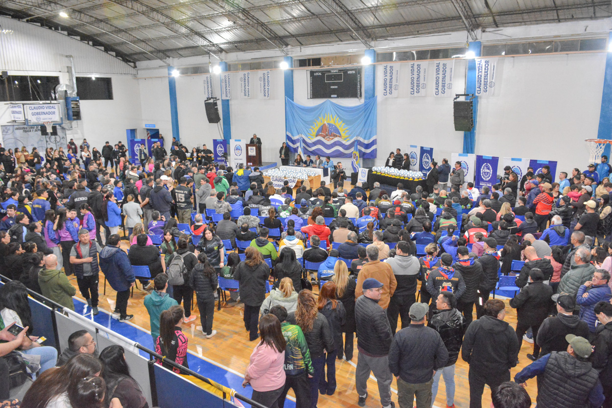 En un multitudinario acto llevado a cabo en las instalaciones del Centro Provincial de Alto Rendimiento Deportivo (CePARD), el gobernador de Santa Cruz, Claudio Vidal, realizó la entrega de actas de compromiso para la adquisición de 5 canchas de césped sintético de fútbol profesional y kit de entrenamiento, destinadas a diferentes instituciones deportivas que participan en las distintas ligas de Santa Cruz.