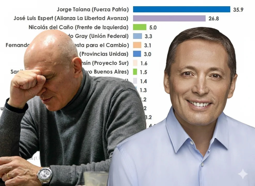 El candidato de La Libertad Avanza, José Luis Espert, se ubica en un segundo lugar con el 26.8% de intención de voto, muy lejos del 35.9% que obtiene Jorge Taiana, de Fuerza Patria.