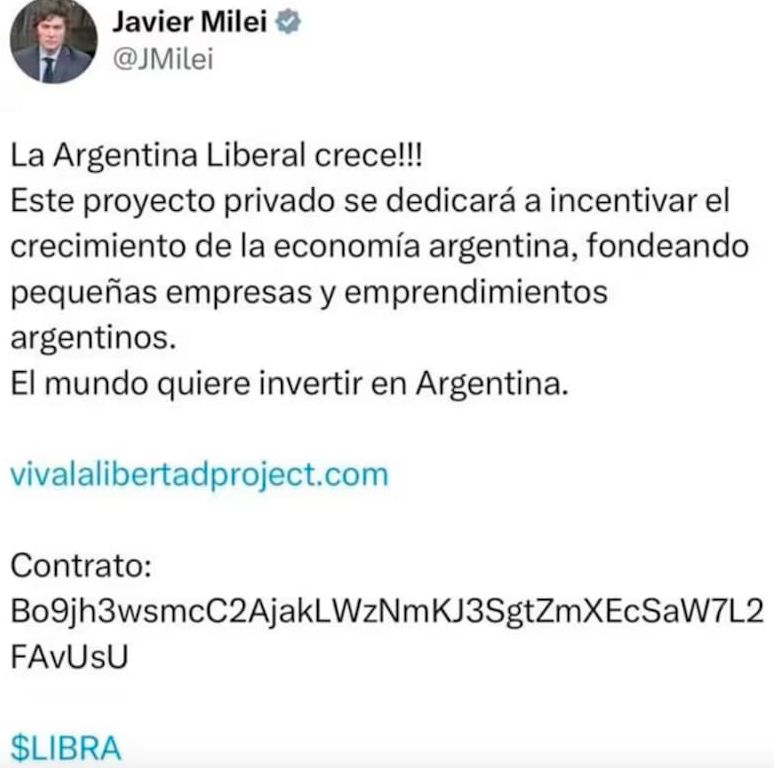 A las 19:01 del 14 de febrero de 2025, el presidente de la Nación Javier Milei hizo un posteo en Twitter en el que difundió el lanzamiento de la criptomoneda $LIBRA. Allí publicó un código alfanumérico de 44 caracteres necesario para operar el token. Cómo consiguió esa información sigue siendo una de las grandes incógnitas en el expediente que instruye el fiscal Eduardo Taiano, aunque las pruebas obtenidas del peritaje al celular del lobista Mauricio Novelli son sugerentes: además de los llamados frenéticos durante el lanzamiento que ya se habían conocido, ahora se suman nuevos audios que dan cuenta de la influencia que tenía el empresario sobre el jefe de Estado y sus redes sociales.