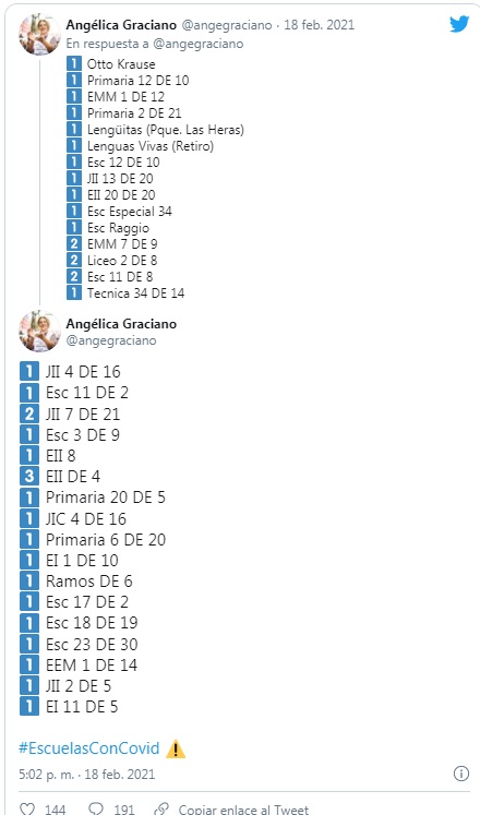 “Hay por los menos dos escuelas con casos de Covid positivo. Le dijeron a los padres que eran mentira los rumores que se corrían de que había maestras con Covid, no lo quisieron decir”, indicó la representante sindical en declaraciones a El Destape Radio.