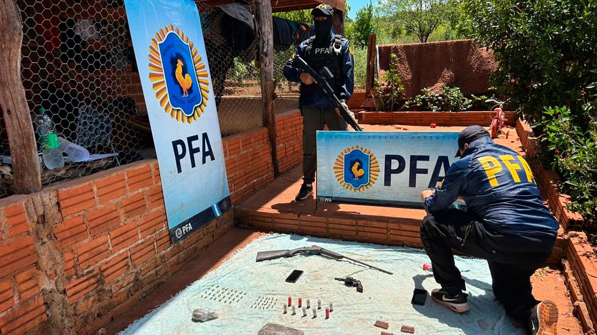 En el procedimiento, los federales secuestraron ¾ de kilogramo de marihuana, 25 gramos de clorhidrato de cocaína y 20 gramos de pasta base, fraccionadas y listas para su comercialización. Asimismo, fueron decomisados un revólver calibre .38, una escopeta de fabricación casera, una carabina calibre .22, más de 300 cartuchos de distintos calibres, un DNI argentino apócrifo con la fotografía del aprehendido, dos teléfonos celulares y documentación de interés para la causa.