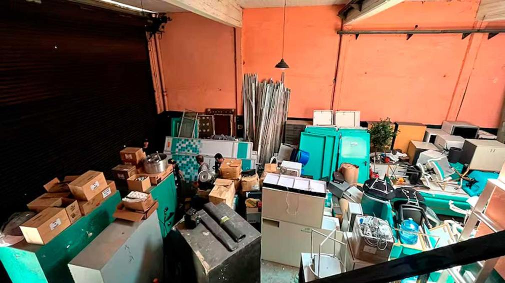 En el galpón de Hipólito Yrigoyen, en el primer allanamiento, la Policía encontró 2 cajas de seguridad, 7 cajas fuertes (4 son de grandes dimensiones), posnets, documentación vehicular, 2 computadoras, material y equipamiento médico, 30 cajas de documentación, y 5 cajeros automáticos.