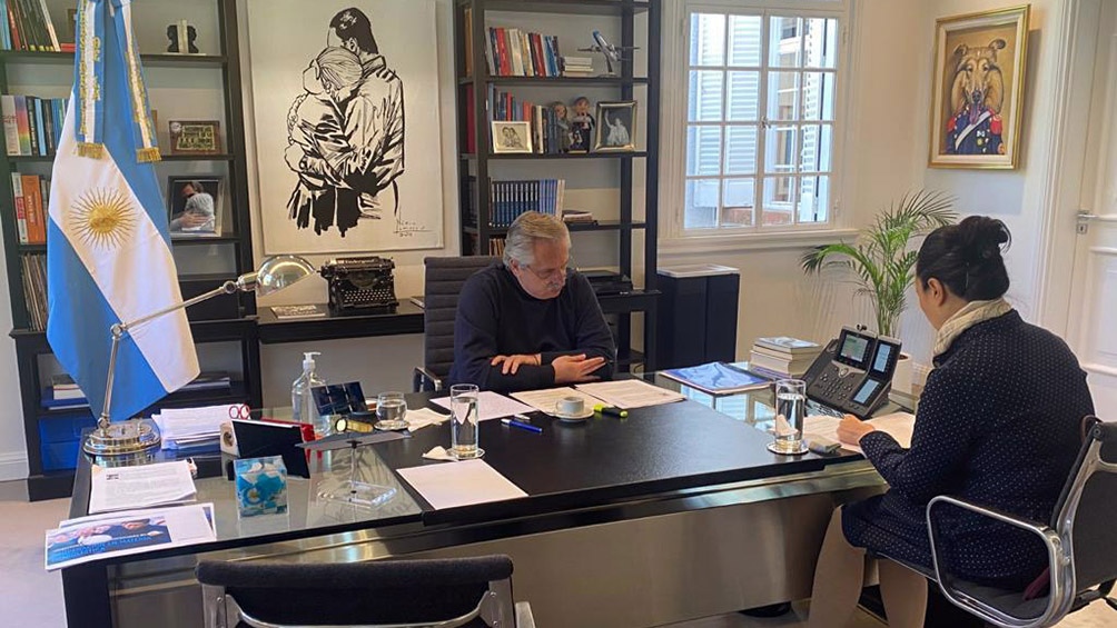 La conversación telefónica tuvo lugar desde la Residencia presidencial de Olivos, durante la cual estuvo acompañado por el secretario de Comunicación y Prensa, Juan Pablo Biondi; el canciller Felipe Solá, y los secretarios de Asuntos Estratégicos, Gustavo Beliz y General de la Presidencia, Julio Vitobello.