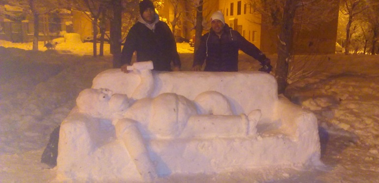 Sin esperarlo, Maximiliano Millain y Alfredo Sepúlveda se volvieron "famosos" en Neuquén por el muñeco de nieve que hicieron con... ¡la forma de Homero Simpson!