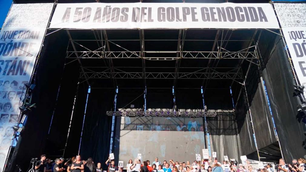 "Son 30 mil y que nos digan dónde están", expresaron los organismos de Derechos Humanos sobre los desaparecidos en el acto central que se realizó en Plaza de Mayo por los 50 años del Golpe de estado del 24 de marzo de 1976.