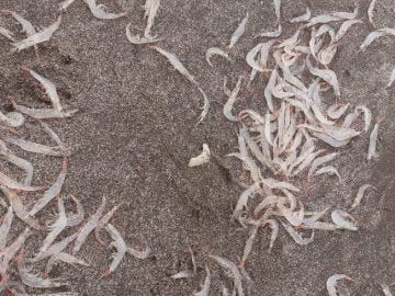 Revelan la causa de la aparición de camarones en una playa de Mar del Plata
