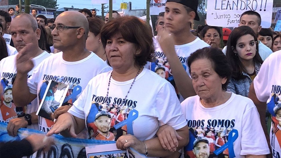 Bajo la consigna ?Todos Somos Leandro?, con aplausos, bocinazos, carteles y banderas argentinas, la marcha estuvo encabezada por los familiares directos de Alcaraz (26)