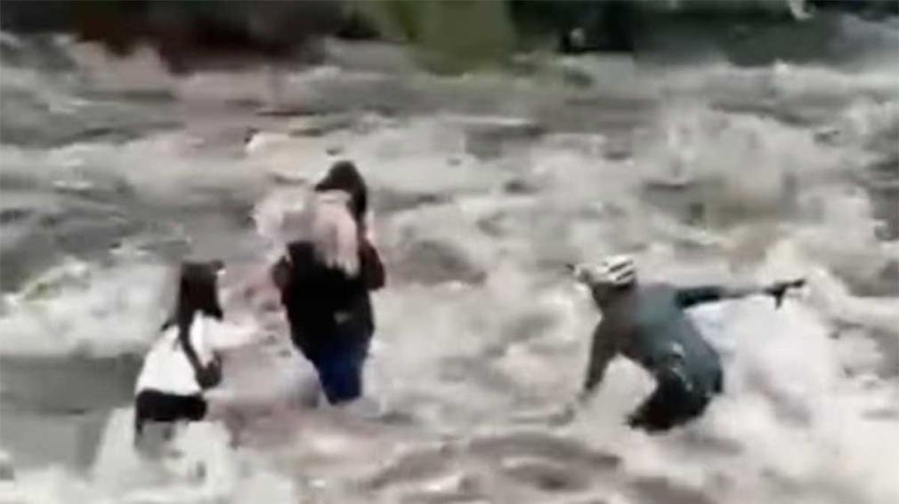 Las imágenes difundidas muestran al funcionario, que pasó de ciclista a rescatista en cuestión de segundos, avanzando con cuidado en medio de la corriente, explicando por dónde moverse y evitando que la fuerza del agua las arrastrara. Finalmente, las turistas lograron salir del cauce sin lesiones.