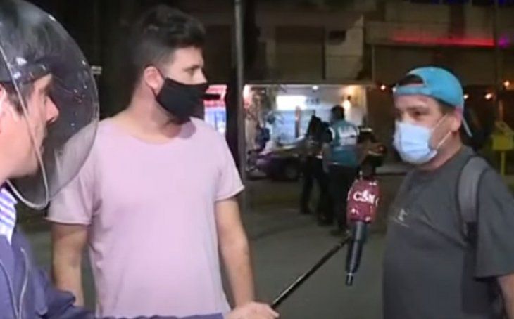Entonces se le acercó otro hombre que estaba en dicha plaza de Palermo y le retrucó: "Si no te ponés el barbijo correctamente nunca te van a dejar laburar, hermano. Si está así ante las cámaras, que se le cae, imaginate lo que debe ser afuera". Luego agregó: "Estoy en situación de calle y trabajo con barbijo y alcohol en gel".