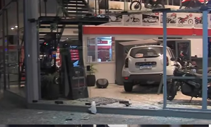 Una camioneta Renault Duster que circulaba por el barrio porteño de Floresta quedó incrustada dentro de una concesionaria de motos tras ser embestida por una moto que cruzó con el semáforo en rojo en la mañana de este jueves.