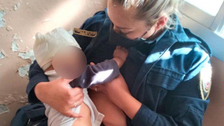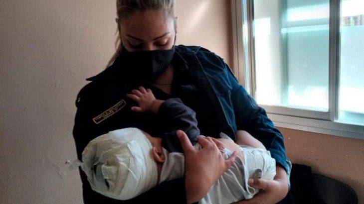La mujer policía está en la fuerza hace cinco años y sus jefes la felicitaron por el emotivo accionar. La foto mientras amamantaba al pequeño no tardó en hacerse viral.