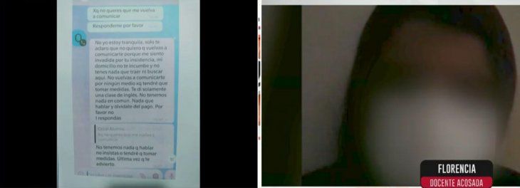 "Nunca paró, no tiene límites", contó la docente que recibió amenazas hasta la semana pasada. "Pido por favor que tengan piedad, que paren con los atropellos, respeten a la Justicia. Necesito que se hagan las pericias, a mi me hicieron miles y nunca me sentí estigmatizada. Por favor, ¡que me dejen vivir en paz! Tuve una clase virtual con este chico, una, y para mí significó perder mi vida. No la quiero perder en serio".