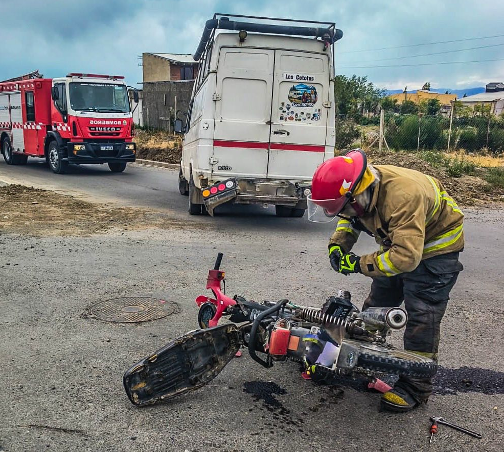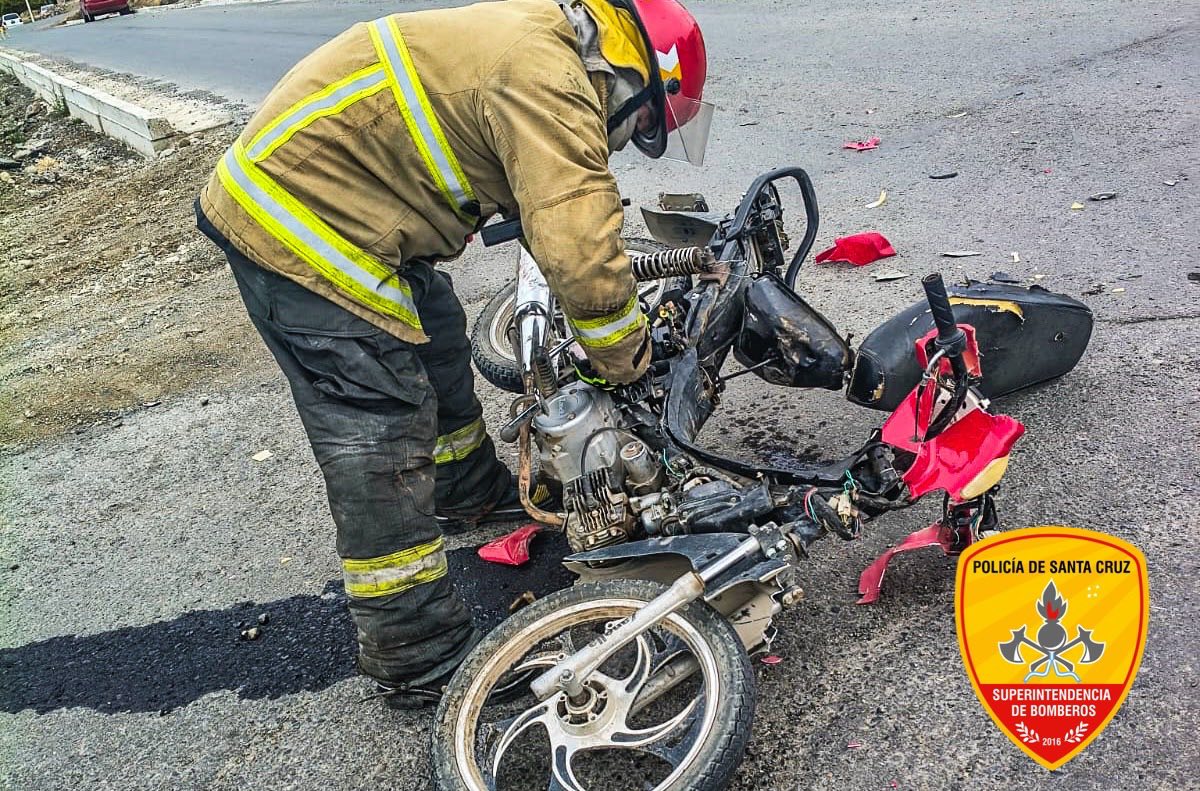 Un accidente de tránsito se registró este miércoles 11 en la ciudad de El Calafate, donde una colisión entre un vehículo de mayor porte y una motocicleta generó la intervención de personal de Bomberos, servicios médicos y efectivos policiales.
