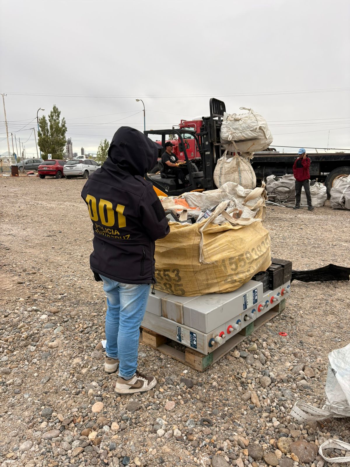 En el mismo sector, los efectivos detuvieron la marcha de un camión con semirremolque perteneciente a una empresa de transporte, detectándose irregularidades en la documentación respaldatoria de la carga, que consistía en bolsones con restos de cobre y aluminio.
