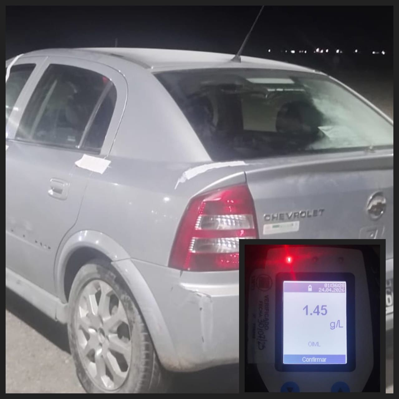 En tanto, al conductor se le realizó el test de alcoholemia, que arrojó resultado positivo de 1,45 gramos de alcohol por litro de sangre. Como consecuencia, se labraron las infracciones pertinentes y se procedió a la retención del vehículo, conforme a la normativa vigente.