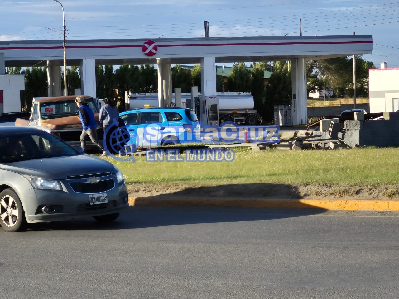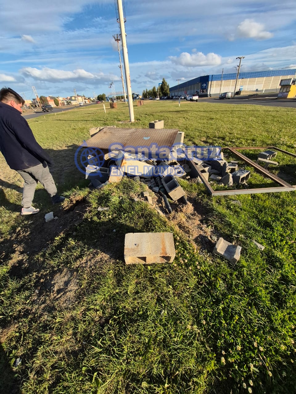 Como consecuencia, el vehículo impactó contra un montículo de tierra que protegía un dispositivo de riego perteneciente a la Municipalidad de Río Gallegos. El sistema resultó dañado y quedó fuera de funcionamiento tras el choque.