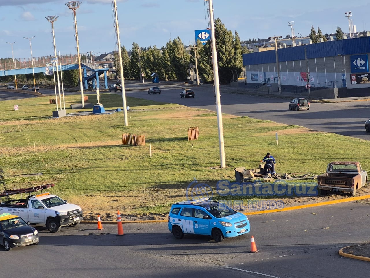 Como consecuencia del hecho, el tránsito vehicular permaneció interrumpido en el sector de la rotonda, habilitándose de manera alternativa la calle Paseo de los Arrieros para permitir la circulación en la zona.