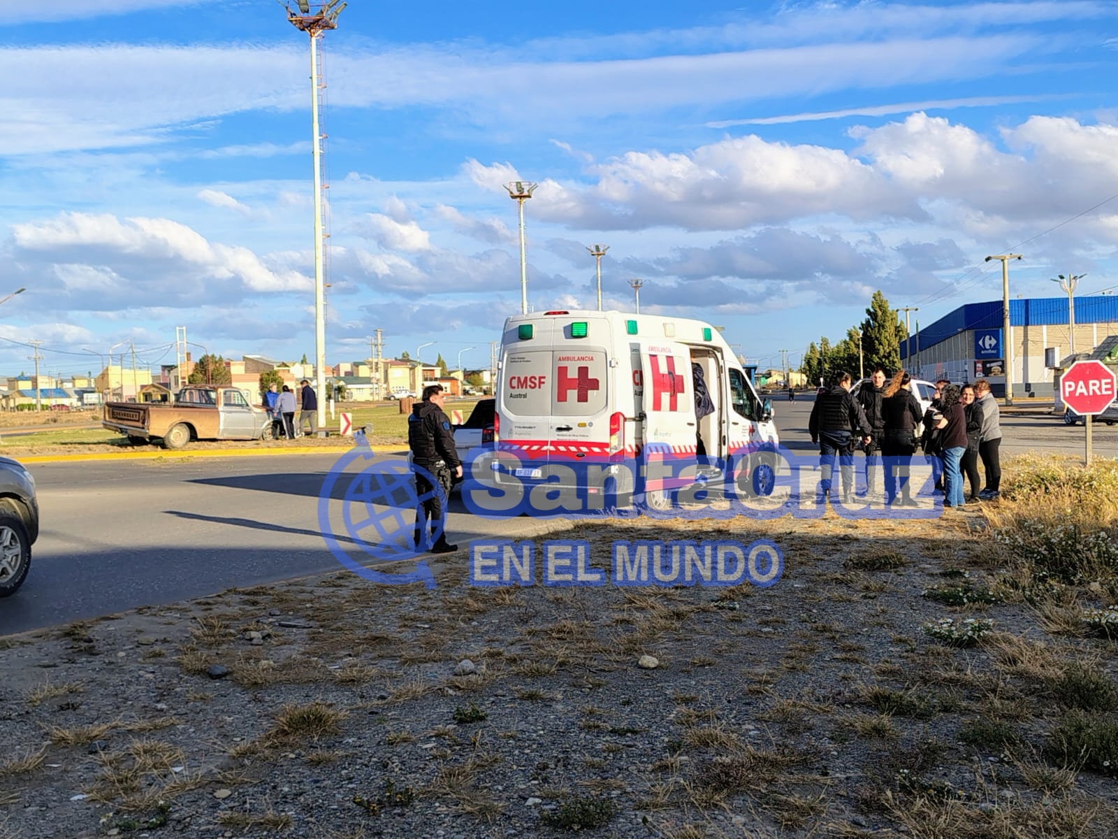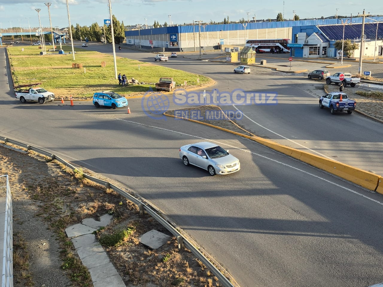Un accidente de tránsito se registró este jueves alrededor de las 19:40 en la rotonda de la avenida Eva Perón, frente a la Terminal de Ómnibus de Río Gallegos, sobre la Autovía 17 de Octubre.