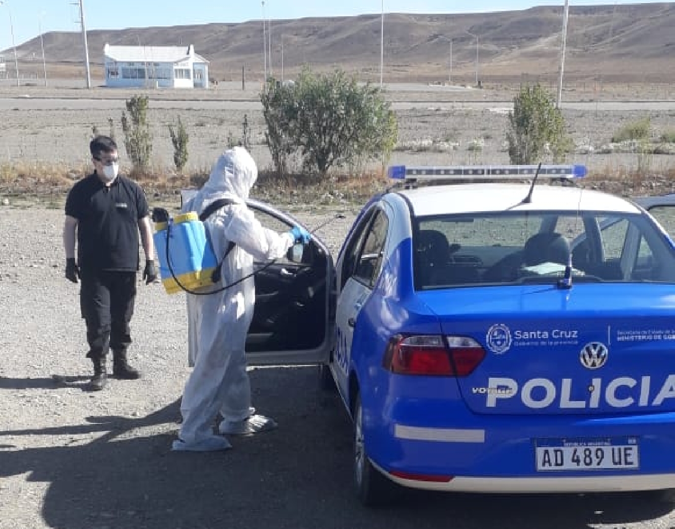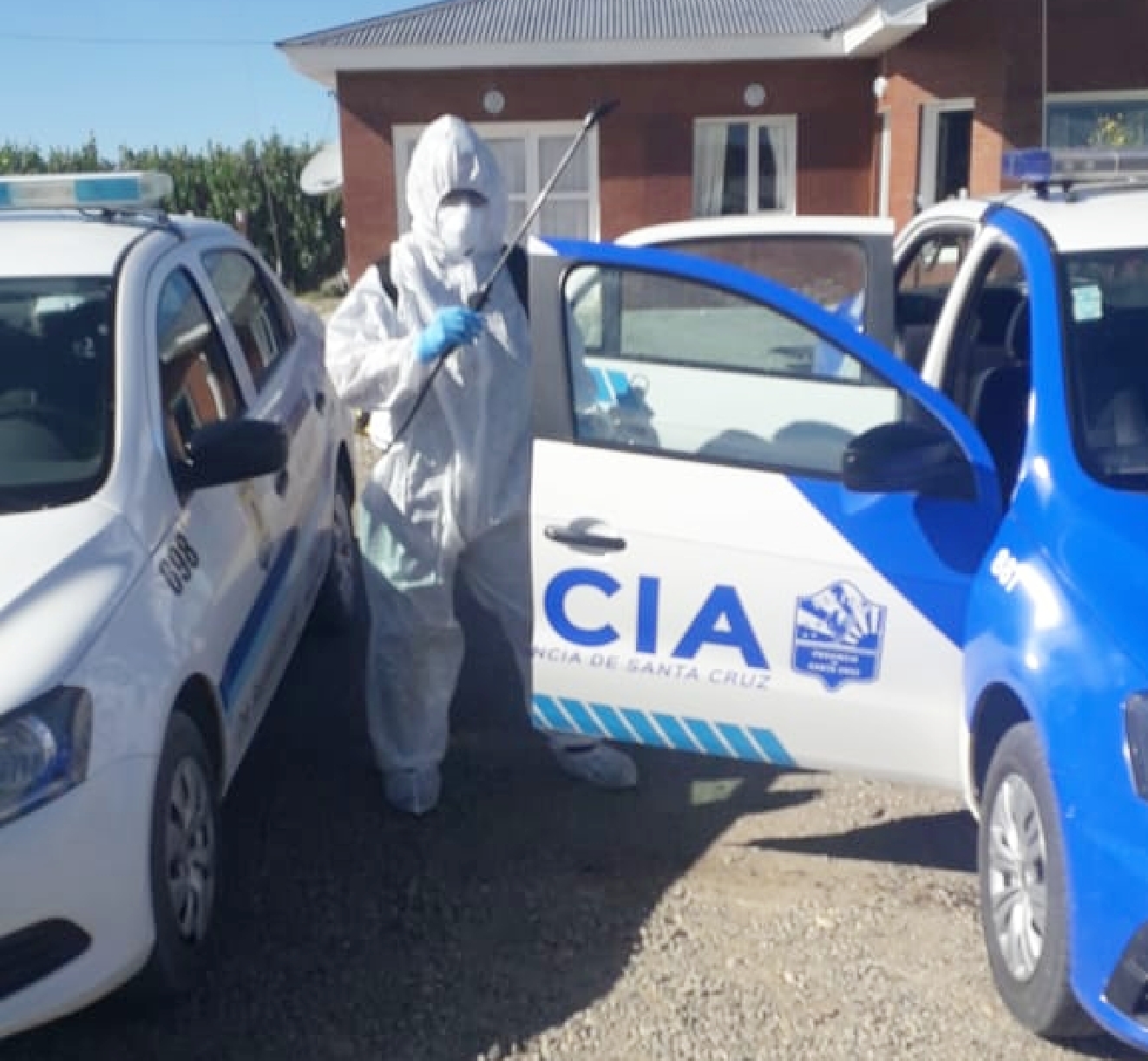 De diferentes reuniones coordinadas por la Jefatura de Policía de Santa Cruz, con las Superintendencias de Personal, Instrucción y DD.HH, de Policía de Seguridad, Policía Judicial e Investigaciones, de Planificación y Desarrollo, además de Bomberos, se ha elaborado un protocolo sanitario de desinfección de móviles policiales, a fin de prevenir la propagación del COVID-19 y preservar la salud de los efectivos que prestan servicio en las diversas dependencias de toda la provincia.