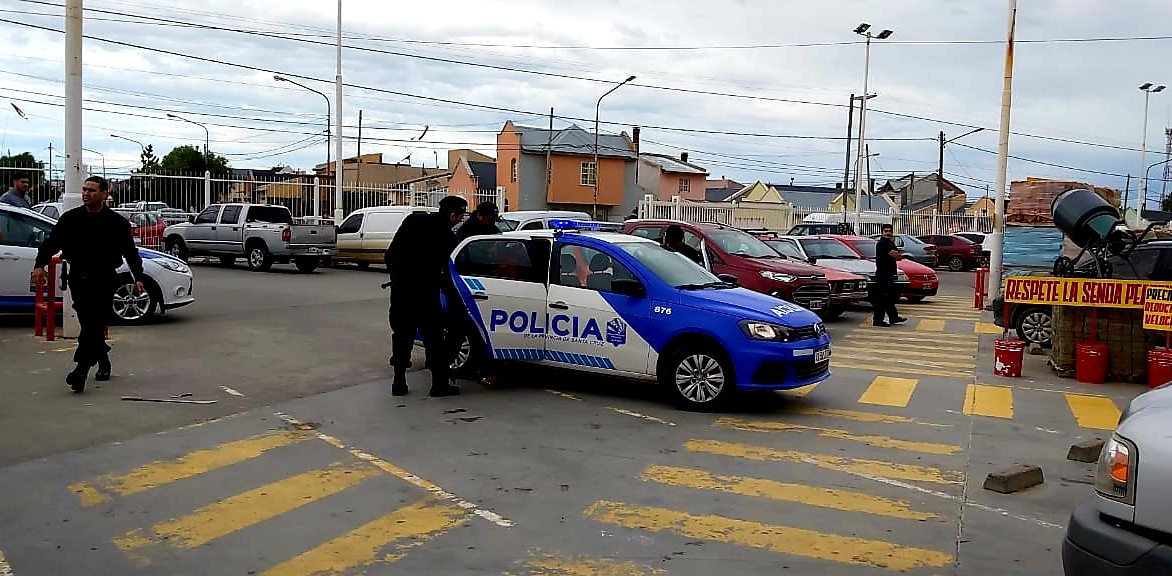 En horas de la tarde de hoy dos sujetos armados con cuchillos fueron reducidos y detenidos en el estacionamiento del Hipertehuelche. Las actuaciones estuvieron a cargo del personal de la División Comisaría Cuarta de la ciudad de Río Gallegos, capital de la provincia de Santa Cruz.