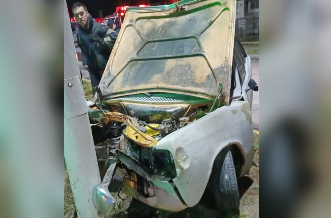 Según informaron fuentes policiales, un automóvil Dodge 1500 color gris, en el que se desplazaban un joven de 21 años y una acompañante de 19, protagonizó el siniestro y terminó contra el poste. Ambos ocupantes resultaron heridos y fueron asistidos en el lugar por personal de la Guardia Urbana Municipal, para luego ser trasladados por una ambulancia del Hospital Regional Río Gallegos. El conductor debió ser intervenido quirúrgicamente, mientras que la joven sufrió una fisura en una de sus piernas.