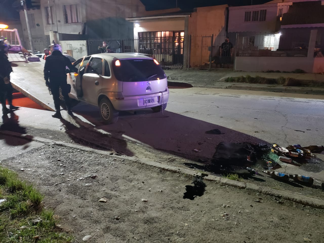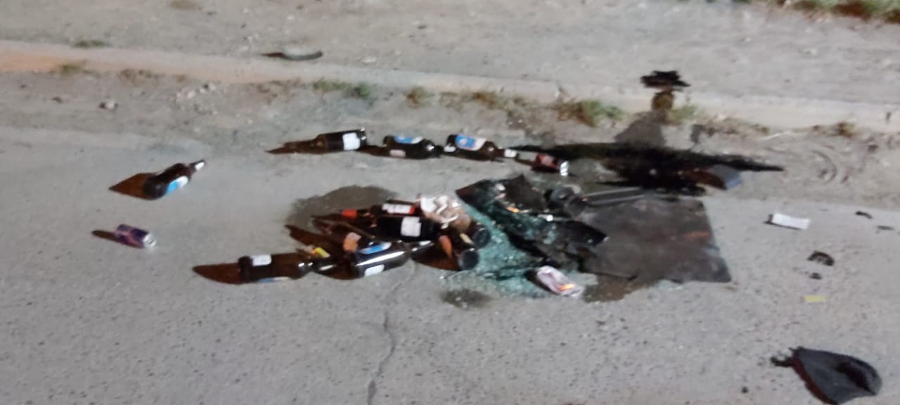 Lo que la policía encontró dentro del habitáculo una gran cantidad de botellas y latas de bebidas alcohólicas, que cuando dieron vuelta la unidad quedaron dispersadas en la acera.