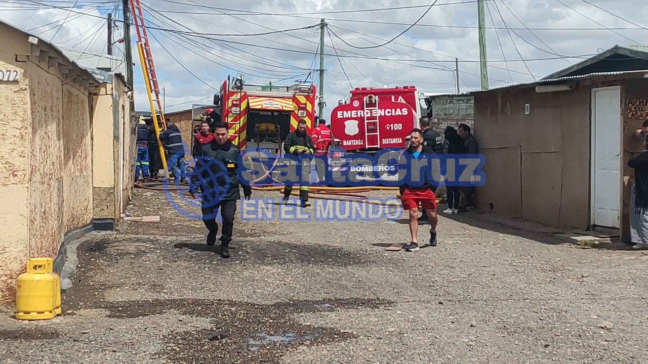 Cabe destacar que también ese fuego que había avanzado hacia la parte superior de la vivienda, a causa del viento reinante, generó que algunas placas colocadas como pared de la casa afectada, se cayeran por efecto del viento y, obviamente, propagaran de alguna manera, el incendio hacia otras viviendas cercanas, que en realidad terminaron siendo principios de incendio, ya que también estuvo la labor de los vecinos trabajando denodadamente con baldes de agua, para que esto no sea un horror, realmente.