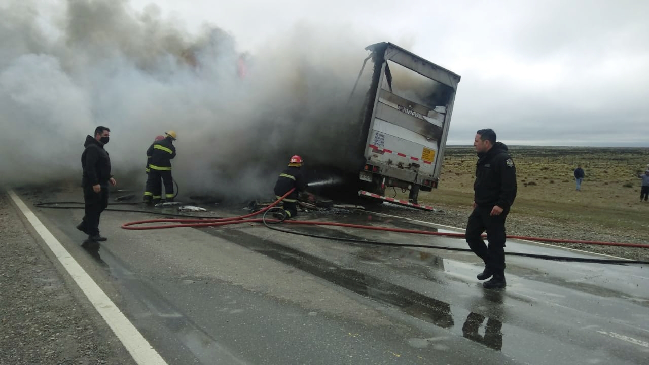 En horas de la mañana de hoy se incendió un camión sobre RN 3 a unos 5 Km. hacia el sur del cruce con la RP 288 sobre la entrada a Puerto Santa Cruz. Las actuaciones estuvieron a cargo del personal de la División Comisaría de la localidad citada.