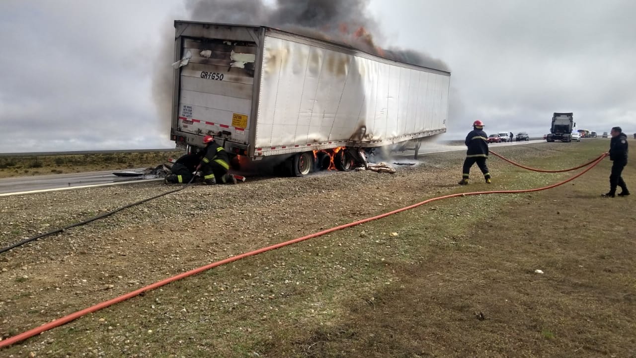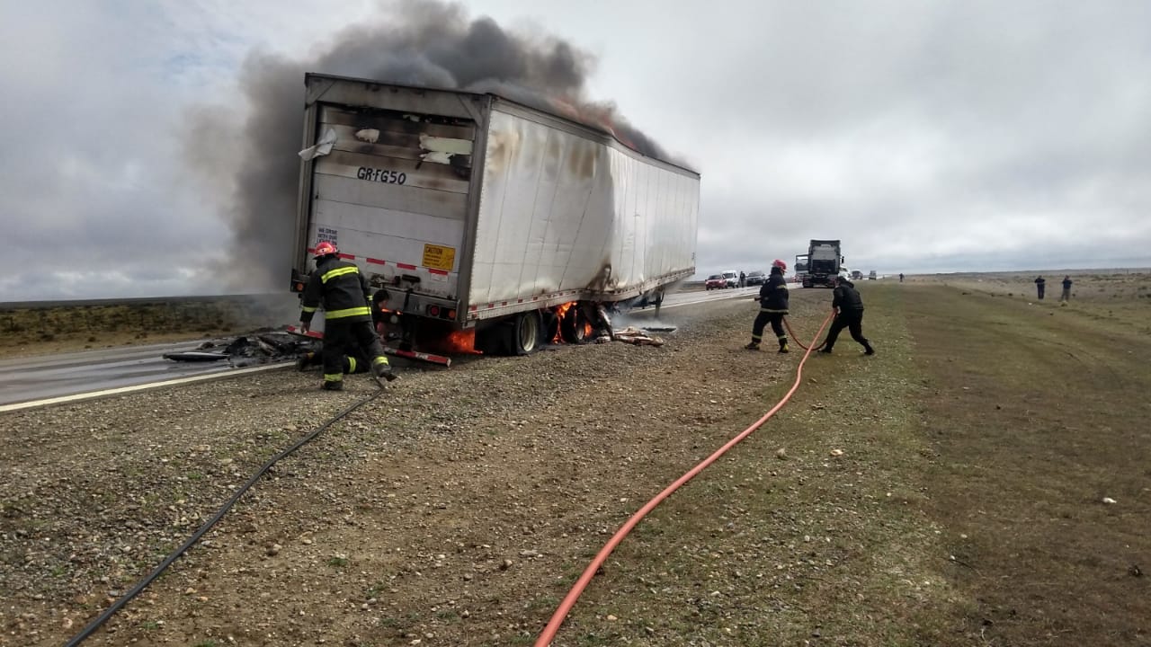 Otra dotación acudió al lugar, perteneciente a la Unidad VII de Puerto Santa Cruz, tratando de sofocar la parte de carga del camión para su posterior remoción.