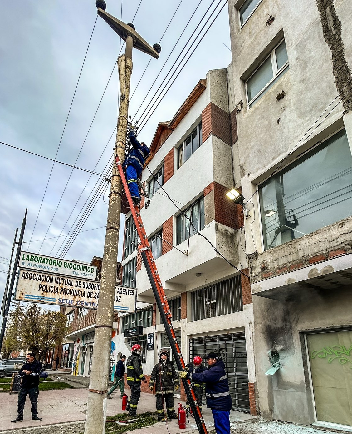 Los bomberos mantuvieron una guardia preventiva hasta la llegada de personal de Servicios Públicos Sociedad del Estado, que se hizo cargo del control del suministro eléctrico y las verificaciones técnicas correspondientes.