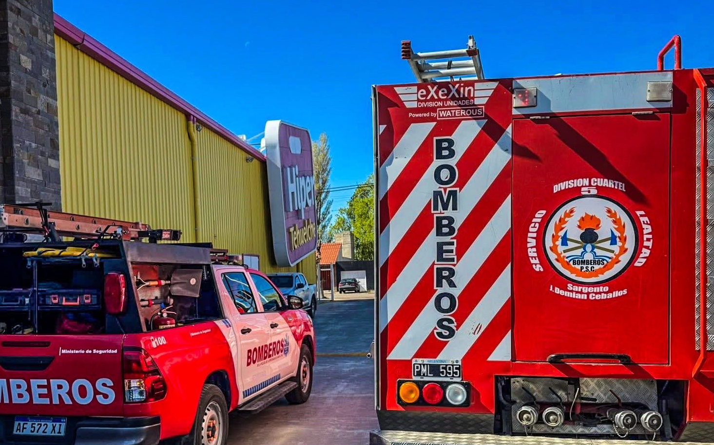 En Caleta Olivia, la División Cuartel 5° del Departamento Zona II acudió al sector de Hipertehuelche tras el aviso de una chapa suelta en un cartel que representaba un peligro por la acción del viento. La dotación, con 6 efectivos a bordo de los móviles PRIO 819 (Autobomba) y PRIO 996 (Rescate), desplegó una escalera de dos tramos y procedió a doblar y anclar la chapa con alambre y tenaza, neutralizando el riesgo de voladura sobre la vía pública.