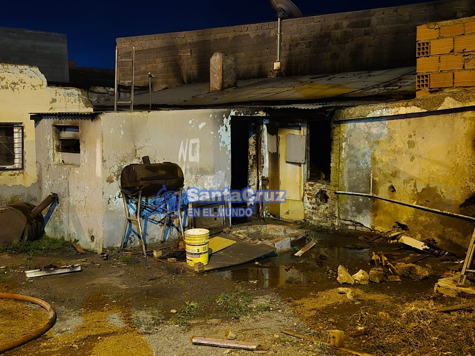 El incendio afectó la totalidad de la vivienda, una construcción con partes de material sólido y amplios sectores de chapa. Las llamas provocaron la destrucción completa del interior y del escaso mobiliario existente -sillas, bancos y mesas- que, según indicaron vecinos, pertenecían a personas en situación de vulnerabilidad que solían utilizar el lugar como refugio nocturno.