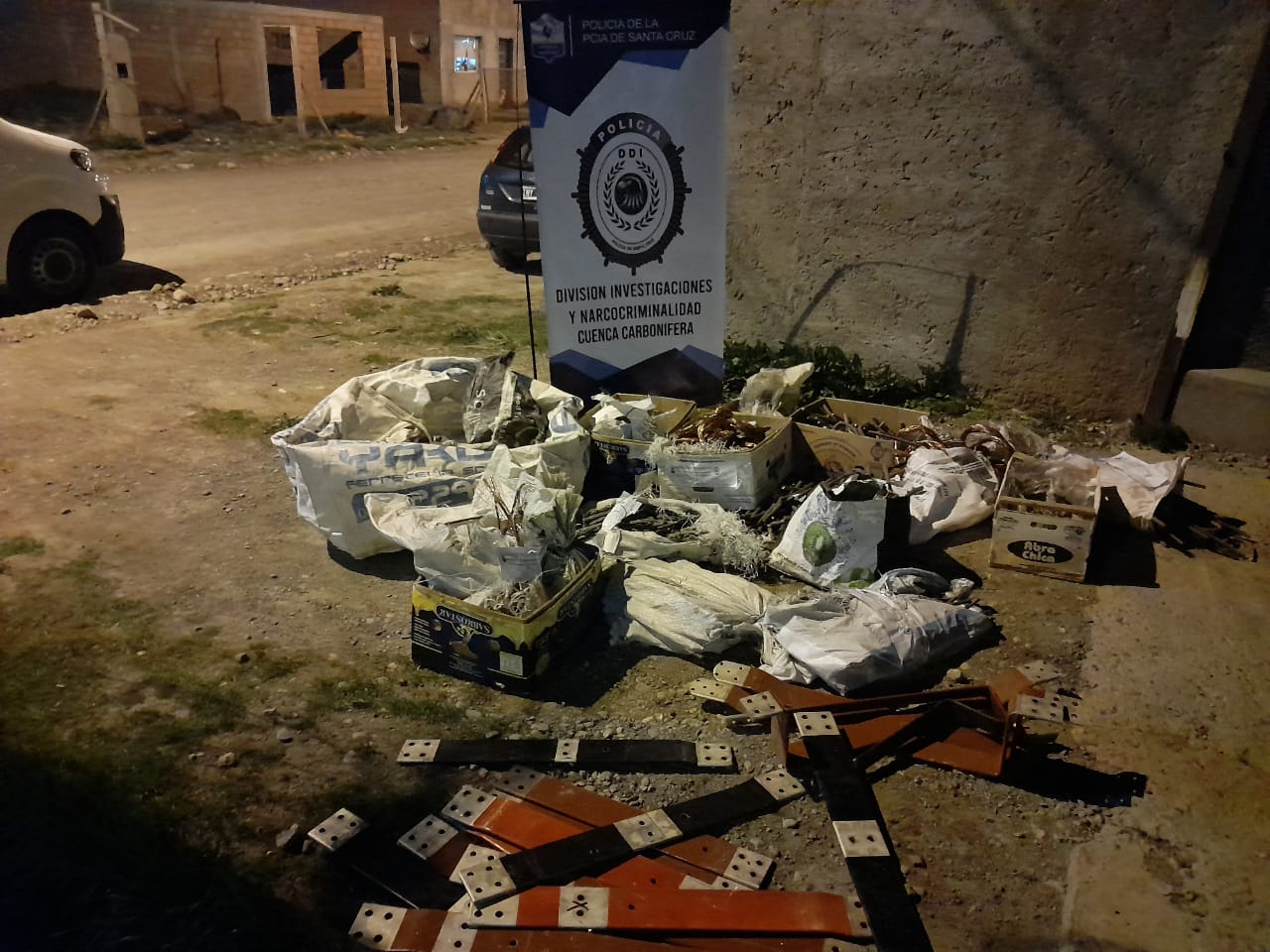 Como consecuencia de las detenciones, hoy siendo las 13:10 horas, se ejecutaron en simultáneo dos órdenes de allanamiento y requisa personal en el Bº Los Mineros de Río Turbio, en los pabellones 05 y 17, respectivamente incautándose alrededor de 40 Kg., de varillas de cobre y elementos pertenecientes a la empresa YCRT.