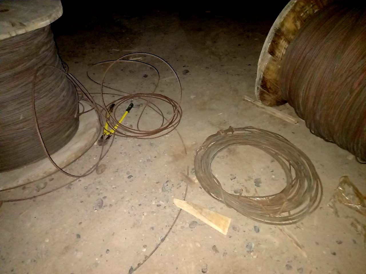 Continuando los efectivos con el rastrillaje observaron a escasos metros varios rollos de cable de cobre cortado y enrollado. Asimismo, se incautó entre las prendas de vestir de los autores, herramientas de cortes.