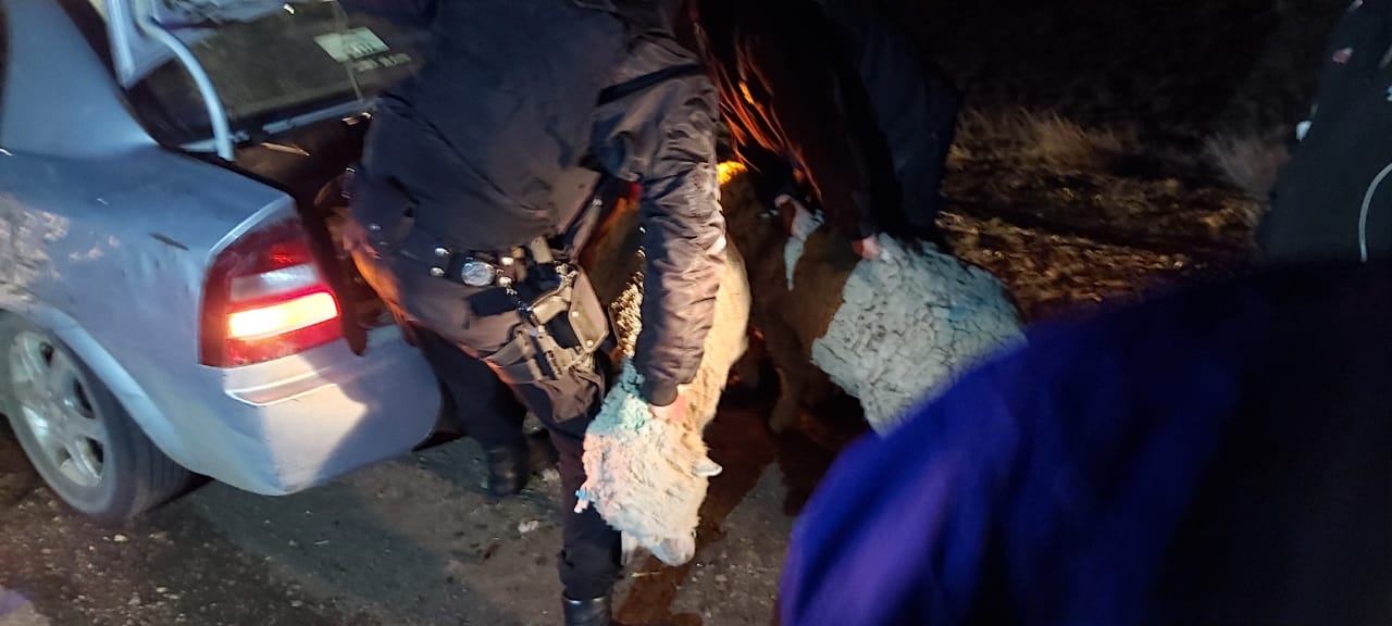 Una vez que se identificó al conductor (37) se procedió a realizar lo propio con los acompañantes, una mujer (30) y otro hombre (23), a todos los esposaron mientras se solicitó la presencia de testigos para luego realizar la requisa de la unidad. Allí fue la sorpresa cuando abrieron el baúl y se encontraron con dos corderos vivos. En el interior del rodado se hallaron municiones de calibre 22 y un cuchillo. Elementos que fueron incautados por la policía.