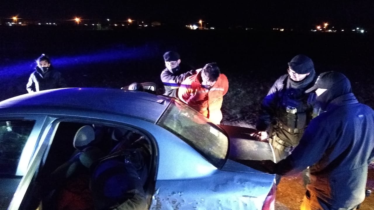 Ante esto se activa un protocolo de búsqueda con apoyo de la División Comisaría Séptima, quienes lograron interceptar el auto en cercanías de la rotonda de circunvalación, donde se lo hace detener y se comienza un control exhaustivo del vehículo. En la huida el rodado iba con la rueda totalmente pinchada por lo que prácticamente anduvo en llantas por un largo tramo.