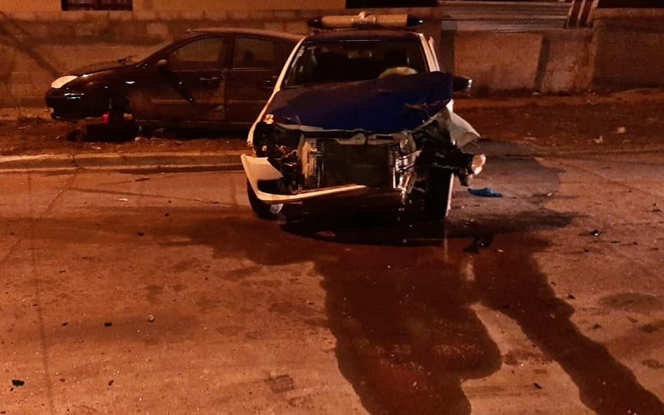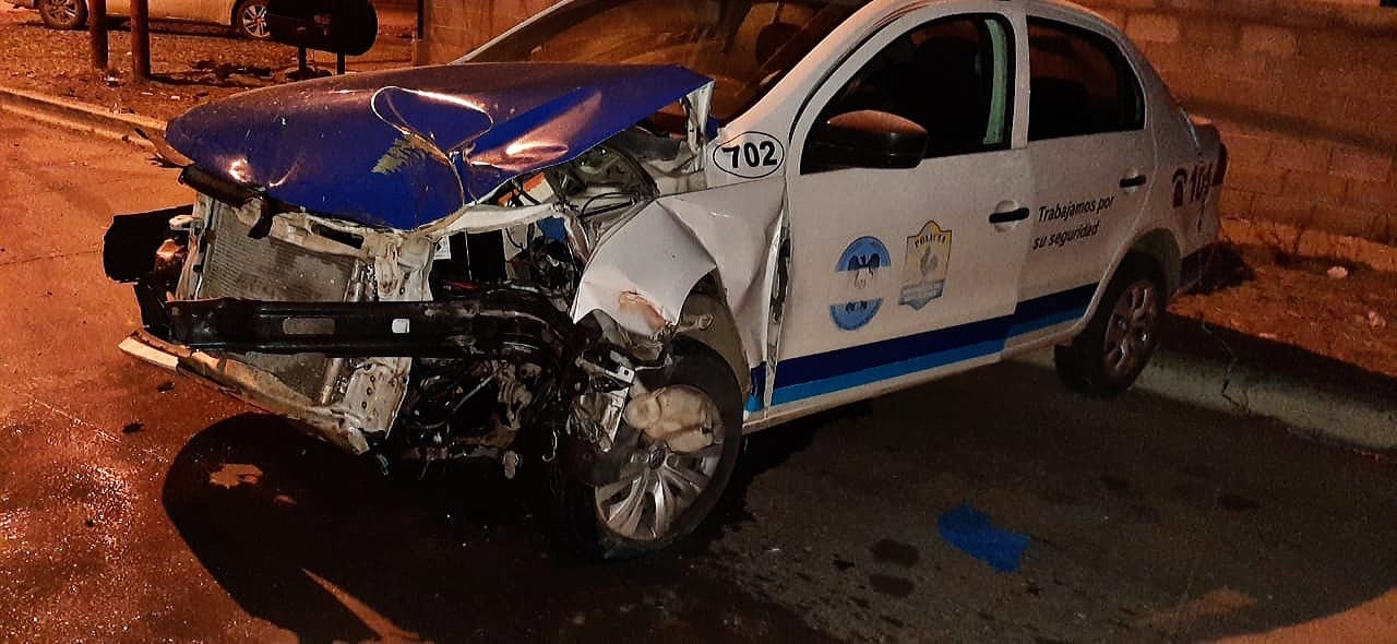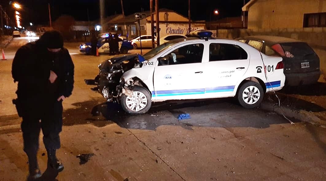 Mientras tanto efectivos del Comando Radioeléctrico realizaban los rastrillajes por la ciudad alcanzando a detectar, en inmediaciones de la calle Las Heras con dirección a la arteria Costa Rica un vehículo marca Toyota de color gris, quien aceleró su marcha al visualizar el móvil policial. Ante ello, realizan un seguimiento y al llegar a las calles Angela Brunetti y Germán Hernández, al pasar por un badén el móvil se desliza debido a la calzada escarchada e impacta con un poste del tendido eléctrico finalizado su recorrido al chocar con un vehículo particular.