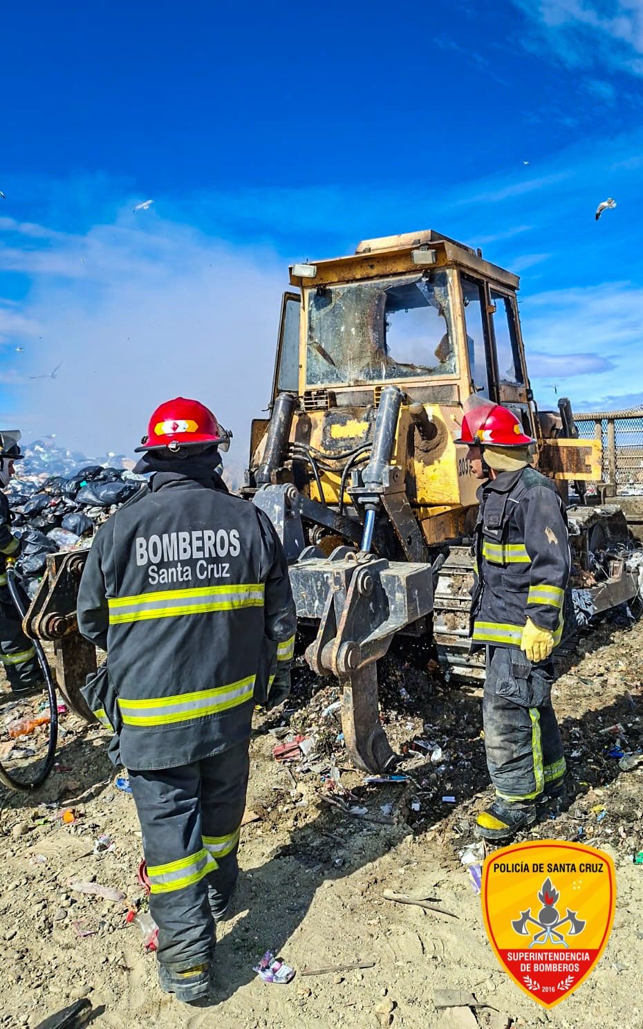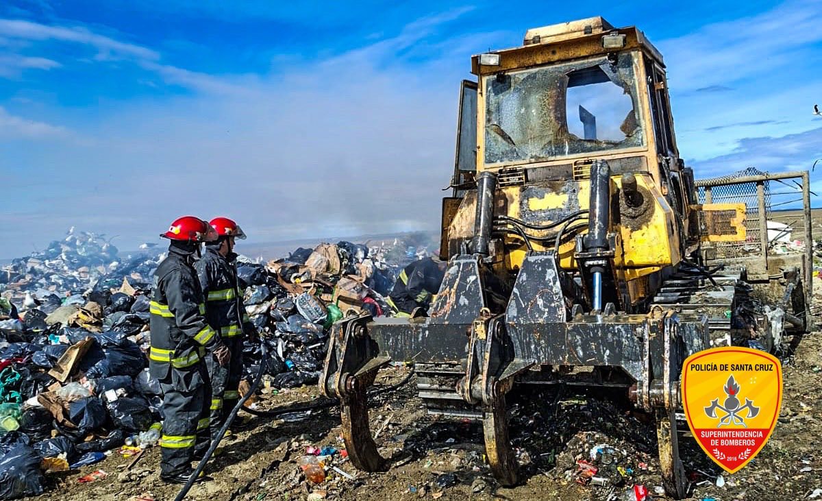 Cerca del mediodía de este viernes, personal de la División Cuartel Dos de Bomberos intervino de urgencia en el sector del Vaciadero Municipal de Río Gallegos, donde se registró un incendio en una máquina topadora que se encontraba en plena operación.