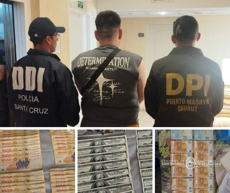 El procedimiento incluyó allanamientos en varios barrios de Pico Truncado y, de manera paralela, un operativo en un hotel de Puerto Madryn, donde se contó con la colaboración de personal de la División de Investigaciones de esa ciudad.