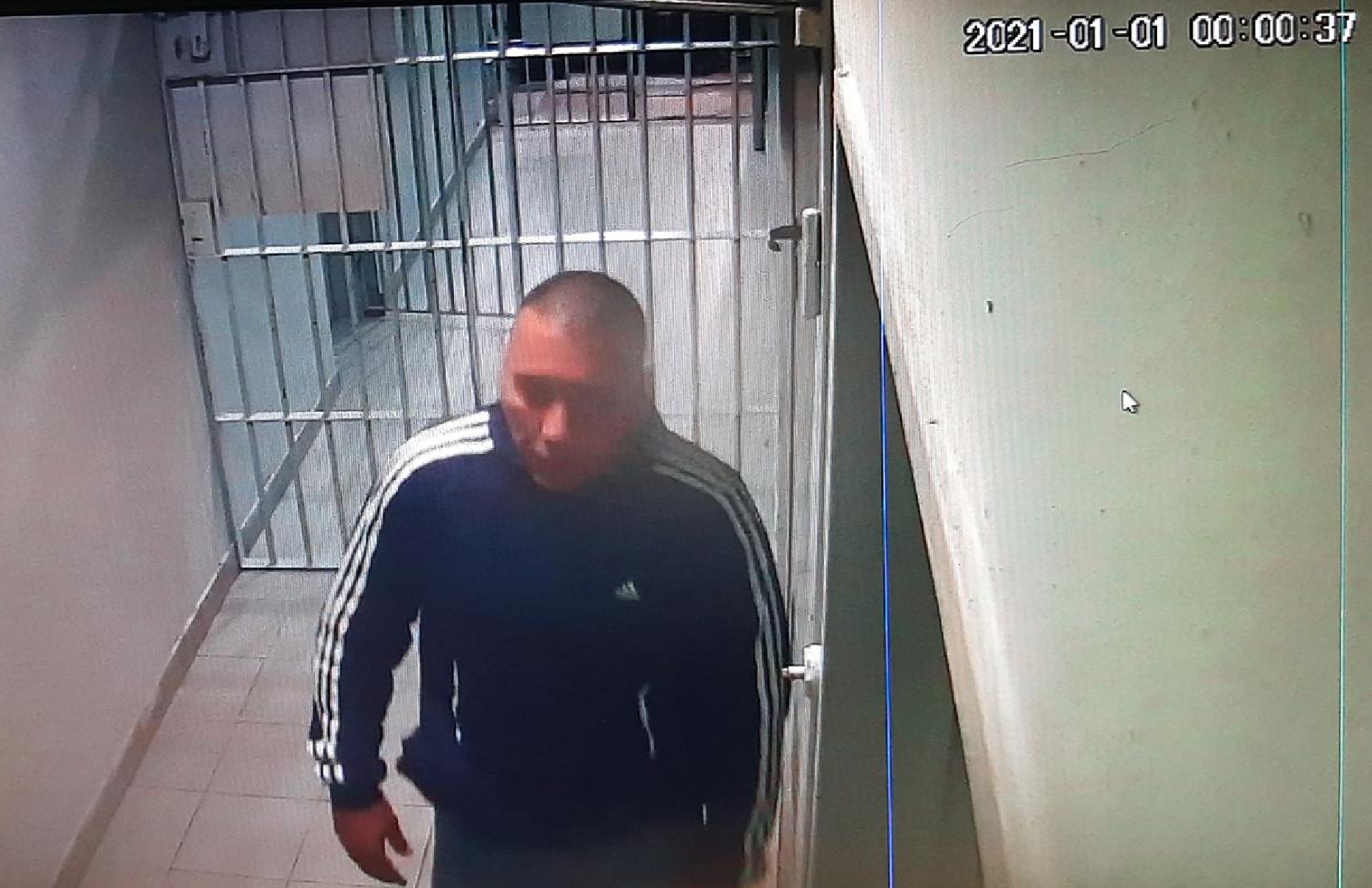 El prófugo se encontraba vestido con buzo con capucha de color azul, con franjas de color blanca de marca Adidas, pantalón tamaño ¾ tipo jean color celeste claro, zapatillas color blanca de lona, marca Topper, siendo de contextura física robusta, de 1,72 mts., de estatura, de piel trigueña, con el rostro con acnés y cicatrices, tiene cabello corto, (tipo pelado), (45 años)., oriundo de Comodoro Rivadavia, con tatuajes en ambos omoplatos, hombros y antebrazos, de ceja curva, pearcing ceja izquierda, parpados cubiertos, ojos marrones oscuros, nariz recta.