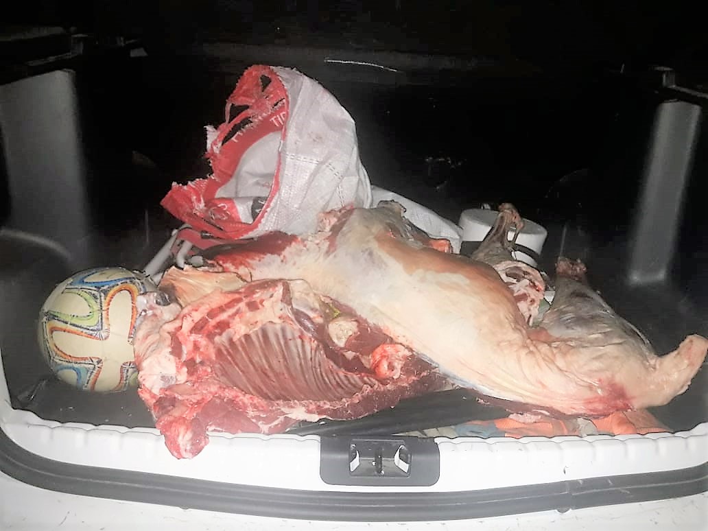 Asimismo, el conductor no contaba con parte de la documentación del vehículo y habilitación de manejo. Seguidamente se solicitó que se exhiba el interior del baúl, donde advierten la existencia de un animal ovino faenado, nuevamente generándose contradicción de la procedencia entre ambas personas, tornándose uno de ellos agresivo y desafiante con los efectivos; por lo que inmediatamente se procedió a realizar la requisa de urgencia sobre el vehículo, concretando el secuestro de dos reses de animal ovino, y un cuarto trasero, cuchillos, chairas y dos teléfonos celulares y el vehículo involucrado, por ser todos elementos relacionados con la investigación.