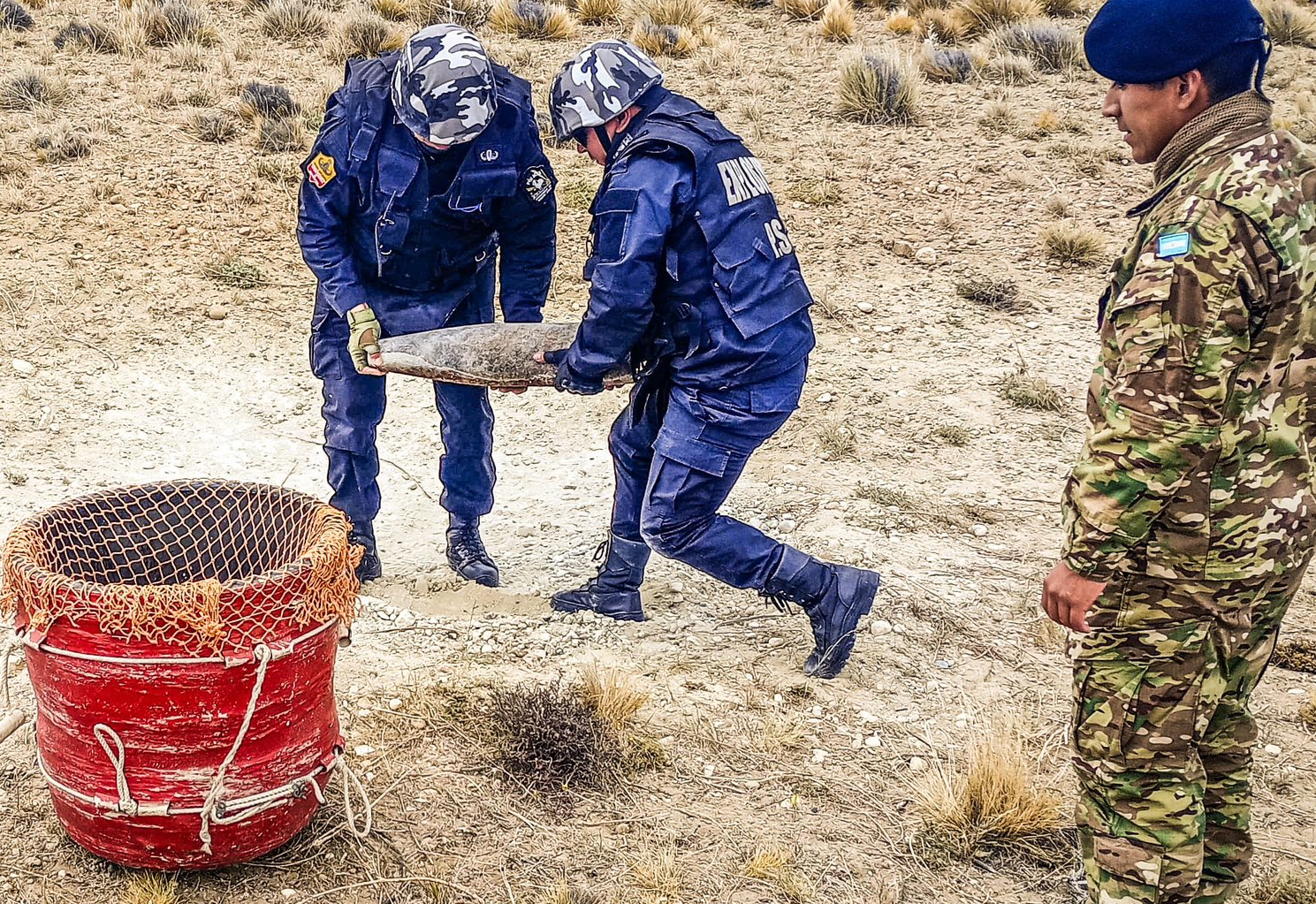 Una vez asegurado, el elemento fue trasladado bajo custodia permanente hasta la ciudad de Río Gallegos, donde quedó resguardado en los depósitos de la División Explosivos de Bomberos, cumpliendo con todas las normas vigentes.