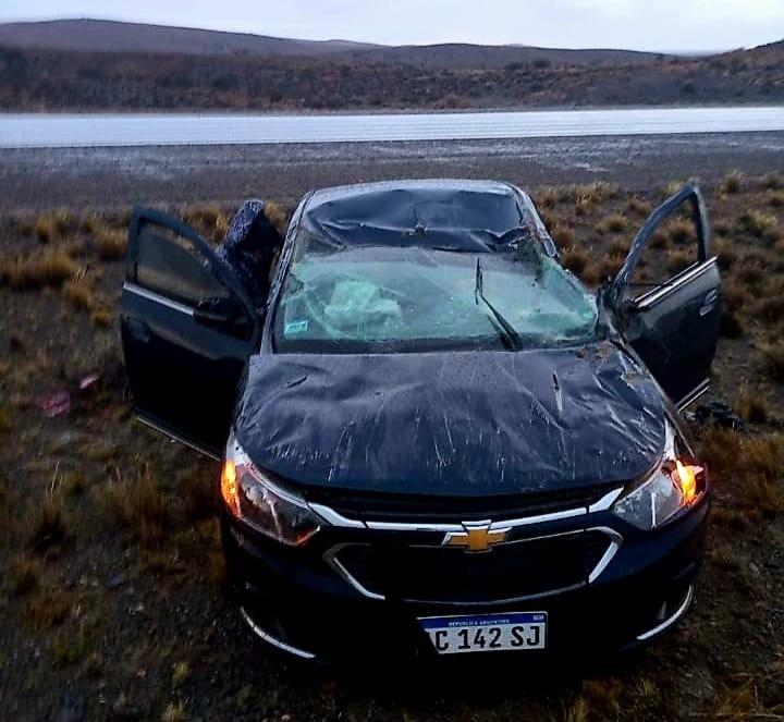 Una familia volcó en Tres Cerros: Fue por las inclemencias del tiempo y deformaciones en la ruta 3
