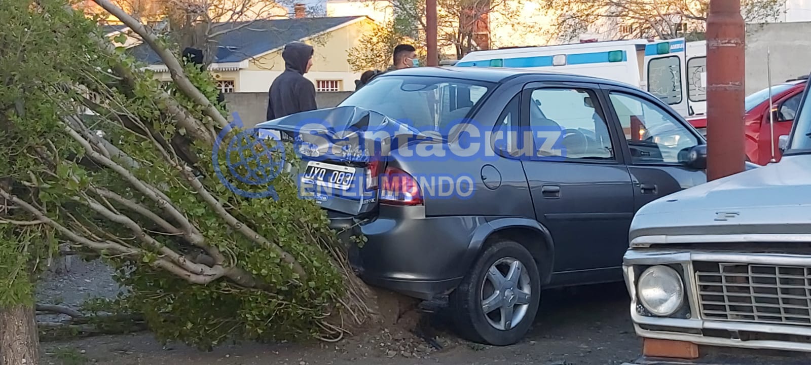 Los vehículos protagonistas de la colisión resultaron ser un Chevrolet Corsa, de color gris y un Fiat Mobi, de color rojo. Después de la colisión ambos rodados quedaron en la vereda de Inmigrantes. El Corsa a su vez terminó chocando con su parte trasera contra un árbol.