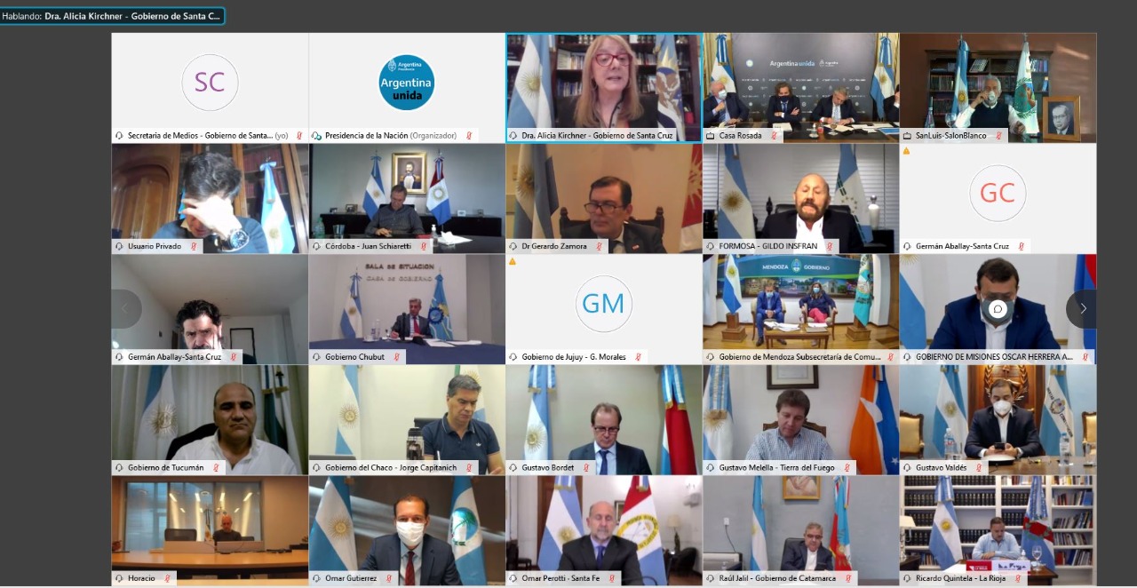 La Gobernadora Alicia Kirchner participó junto a los mandatarios de todo el país de una videoconferencia con el presidente de la Nación. Se abordó la situación a nivel nacional y de cada una de las provincias participantes en relación a la emergencia sanitaria vinculada al COVID-19.