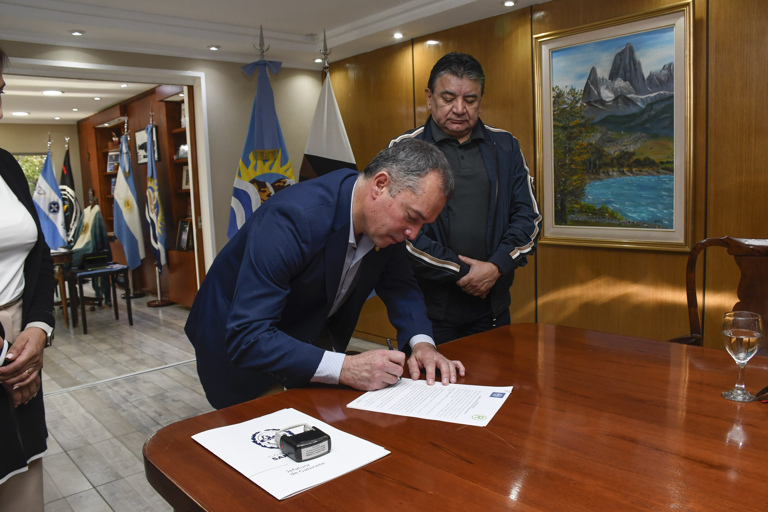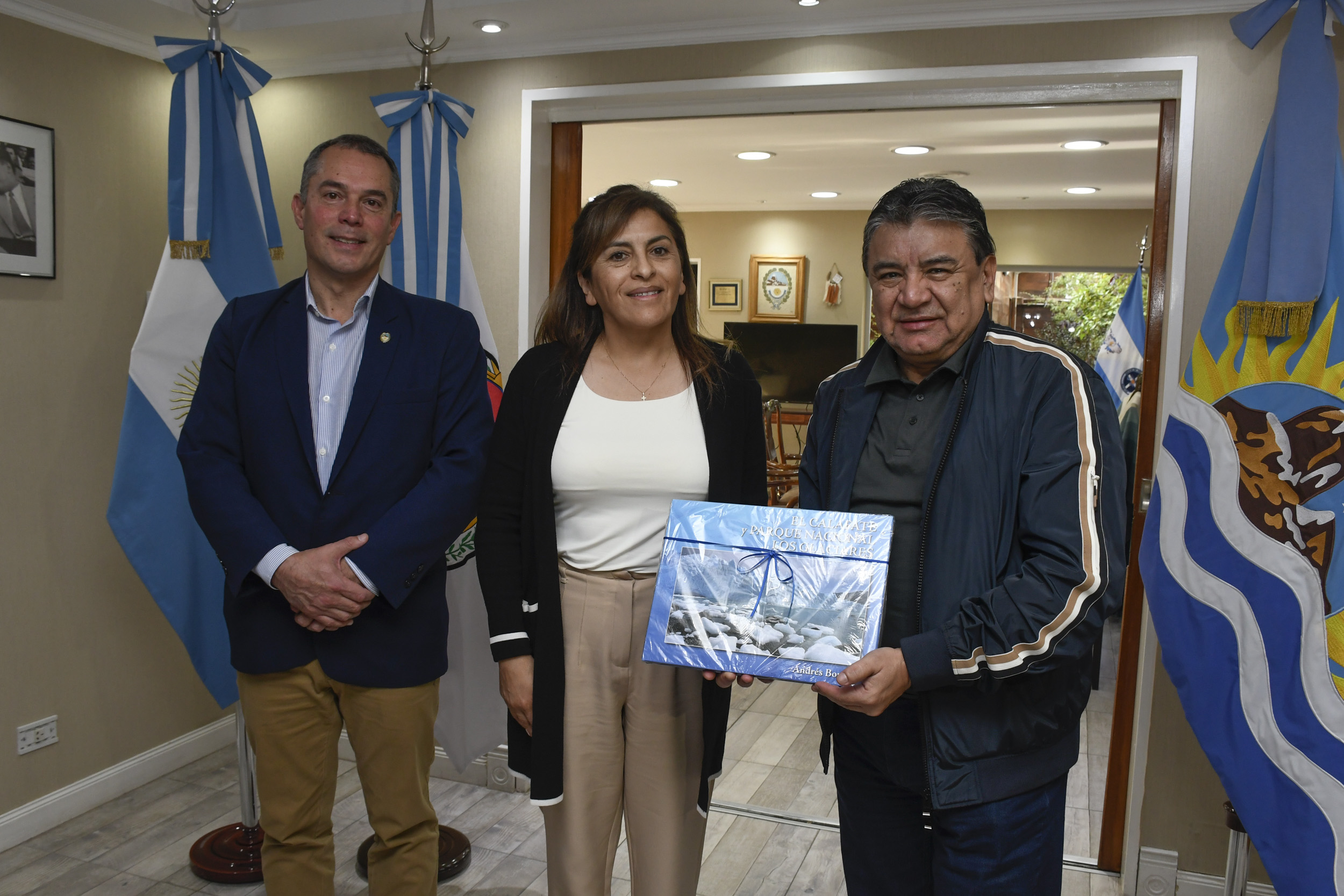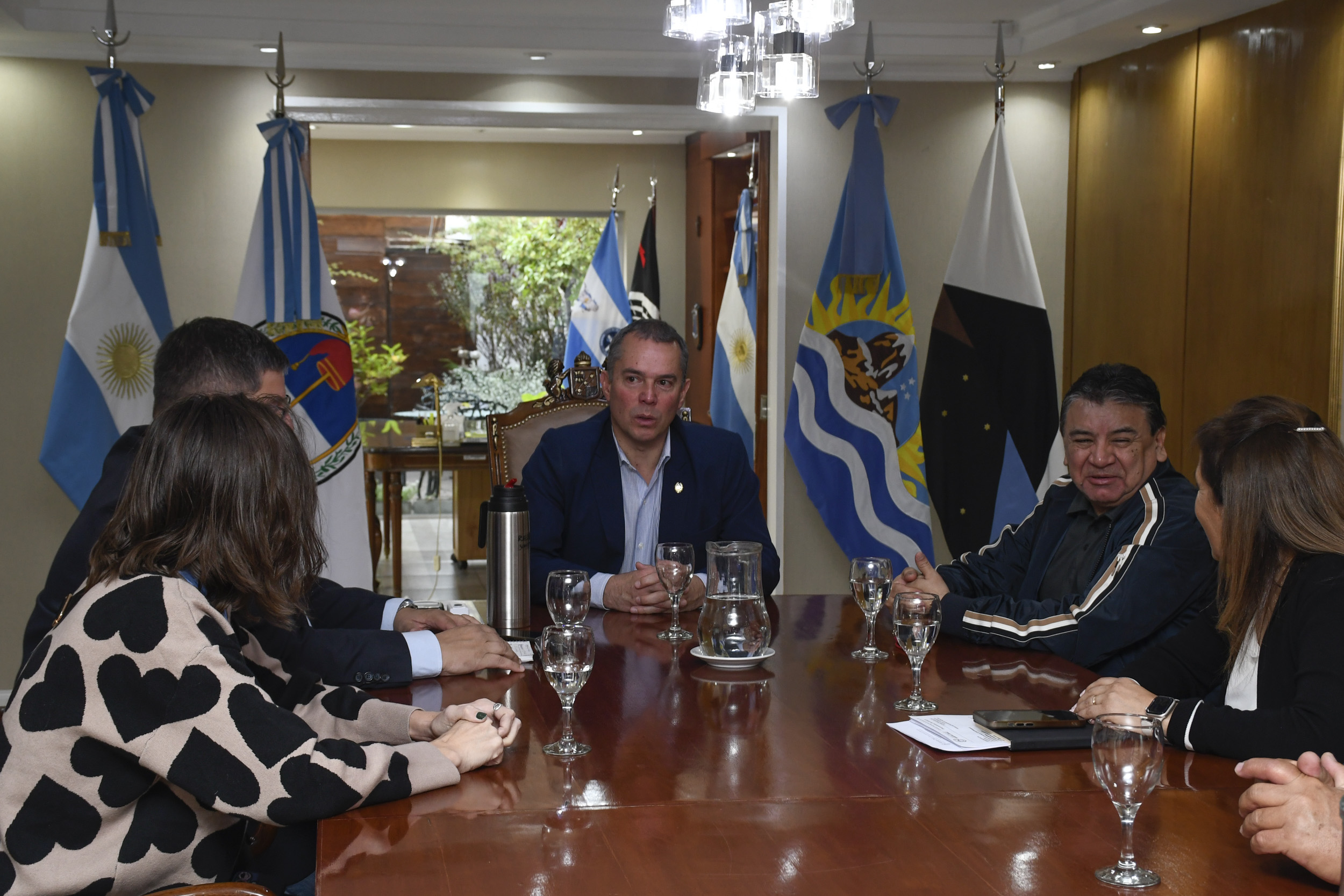 Acompañaron la reunión la presidenta del Consejo Provincial de Educación, Iris Rasgido; el ministro de Trabajo, Empleo y Seguridad Social, Ezequiel Verbes; Luis María Campos, RENATRE Santa Cruz y Sol Henchoz, autoridad del ente rural nacional.