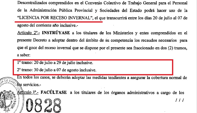 Ante la situación de pandemia y a la vez cumplimentando el Convenio Colectivo de Trabajo el Gobierno de Santa Cruz dio a conocer las fechas de la licencia por Receso Invernal prevista en el art. 142 inciso u, de dicha herramienta.